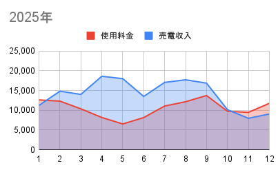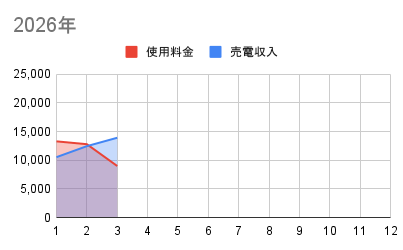 各年の収益を見てみると冬時期は売電よりも使用料のほうが上回ってしまいます。